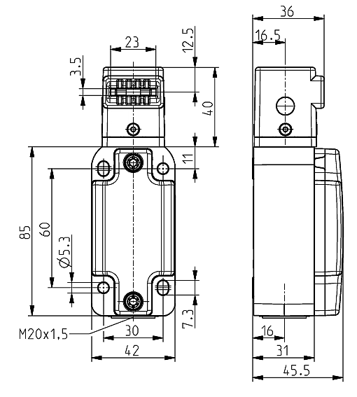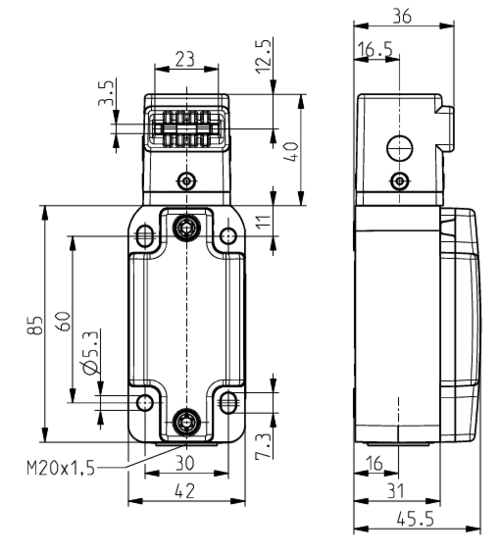 M20 x 1.5; 拧入深度 max. 9 mm; 只能使用防护等级IP66并通过防爆认证的线缆格兰, 以及适用于指定环境温度范围.