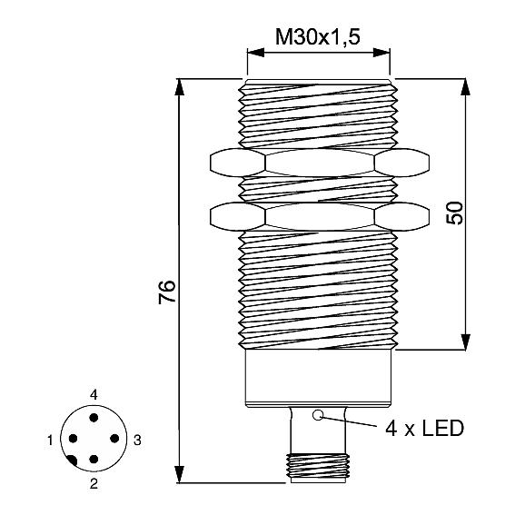 接插件连接器 M12 x 1, 4-针