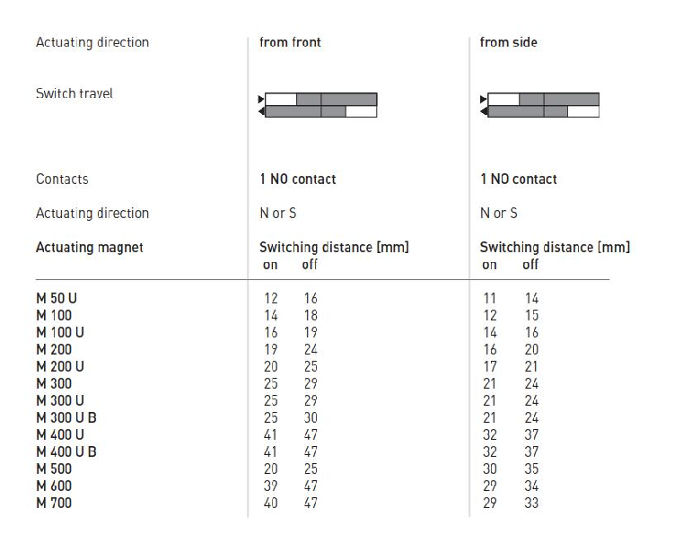 感应距离可达41 mm,取决于操作磁铁