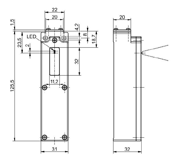 开关距离:Max. 250 mm,与物体颜色和材质无关