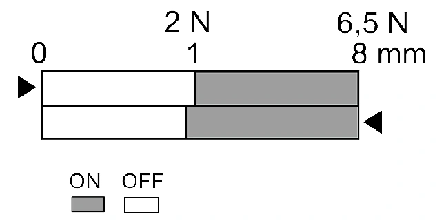 max. 0.5 m/s with a vertical actuating angle of α = 40° and β = 25°