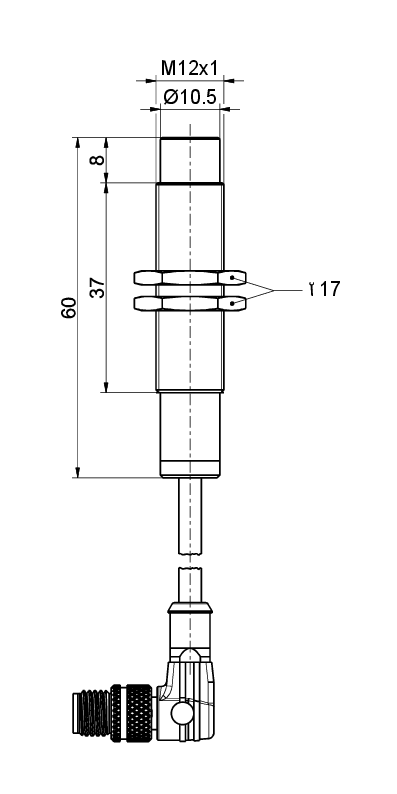 M8插头,4-针,A编码,1个开关输出,1个校准输入